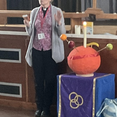 Our local congregation regularly pray for us and we share our Education Sunday Service and walk with them. There are so many talented people in the congregation who help us in school in so many ways. Recently two of the ladies in the congregation kindly turned the children's designs into altar cloths for us, so we have the same colours on the cloths as there are in the church throughout the year.