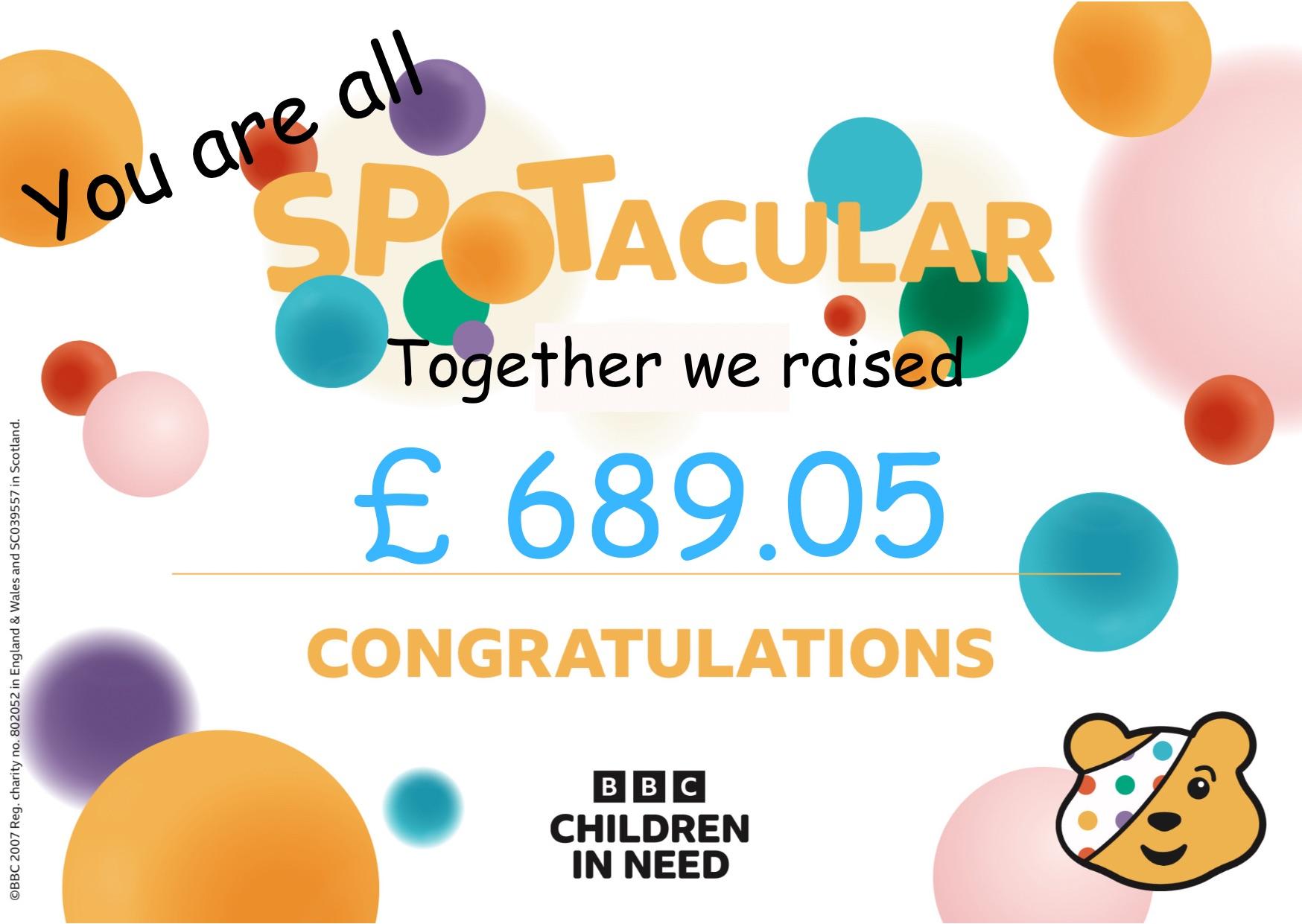 This year the members of parliament organised the fundraising activities in order to support children in need. They decided to take part in Joe Wicks’ ‘Bearpee’ challenge. They challenged year group to complete 1000 burpees during the week leading up to Children in Need, finishing with a non-uniform day on Friday 17th November. The children were really successful and completed the challenge with ease and huge smiles whilst also raising money for others. Together we raised £689.05. Thank you to all our families who help support us raise this amount.