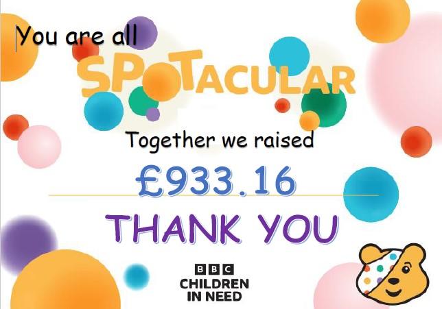 Pupils came into school wearing odd socks and yellow clothes to help raise money for Children in Need. This year pupils donated money to the charity by buying Children in Need merchandise as well as making a donation to be able to wear non-uniform for the day. In total, we donated £417!