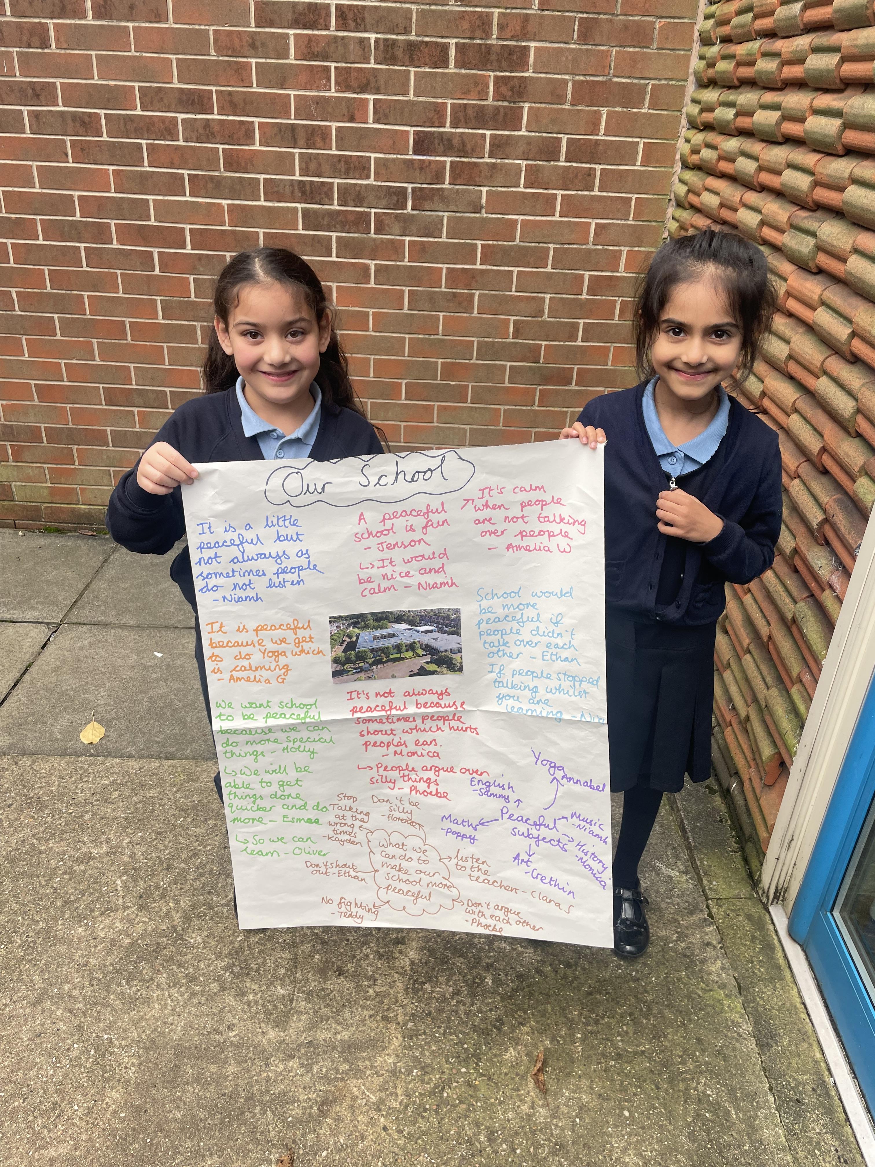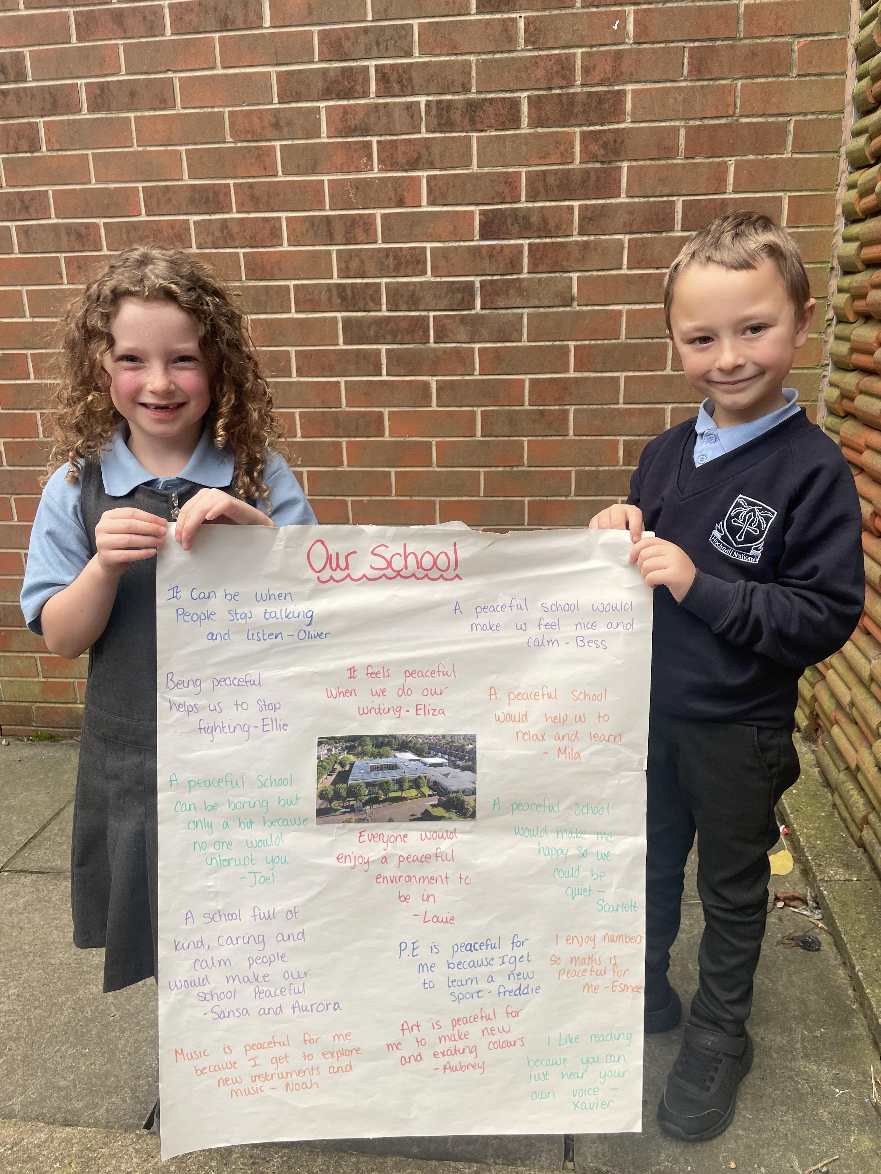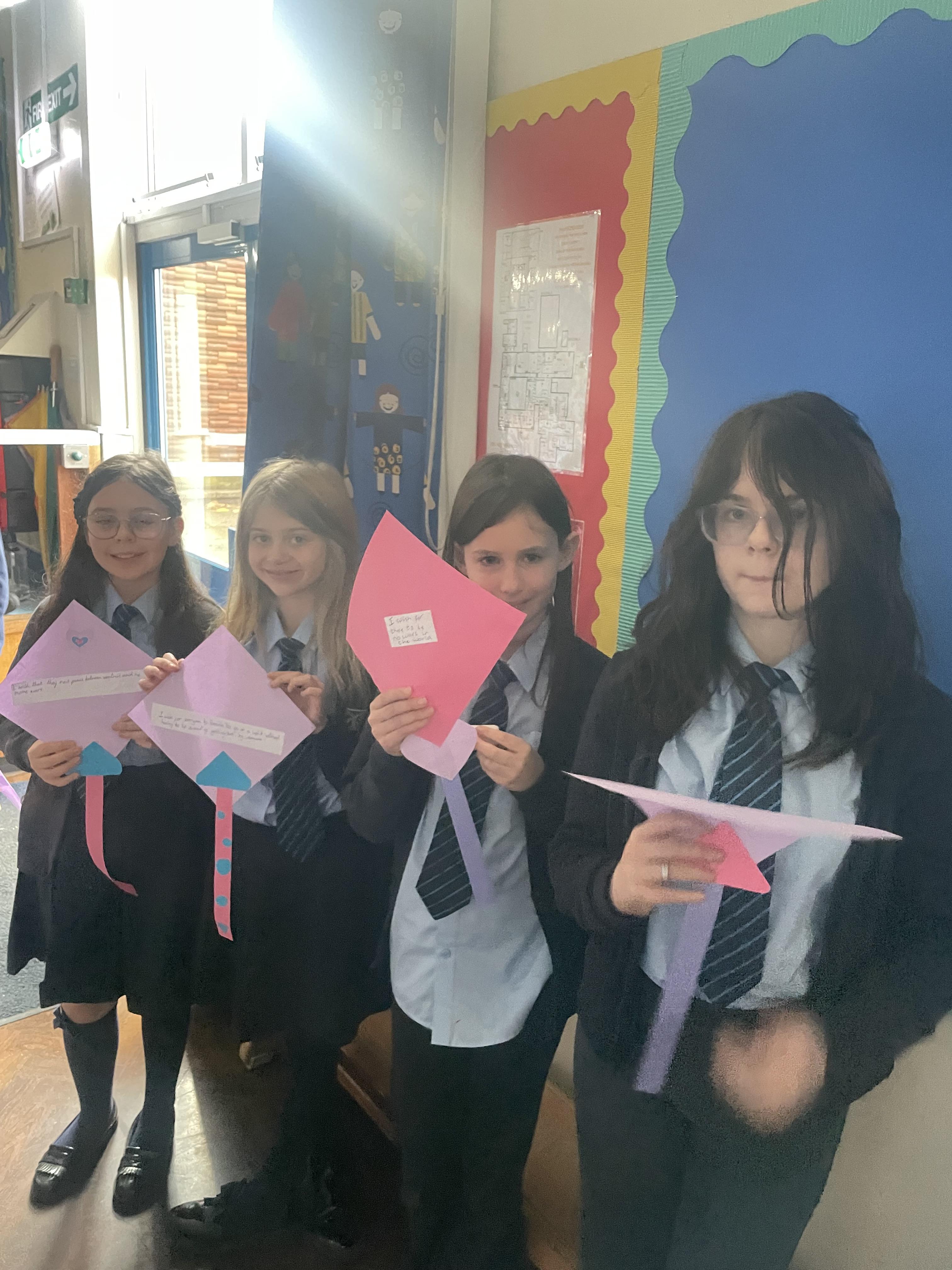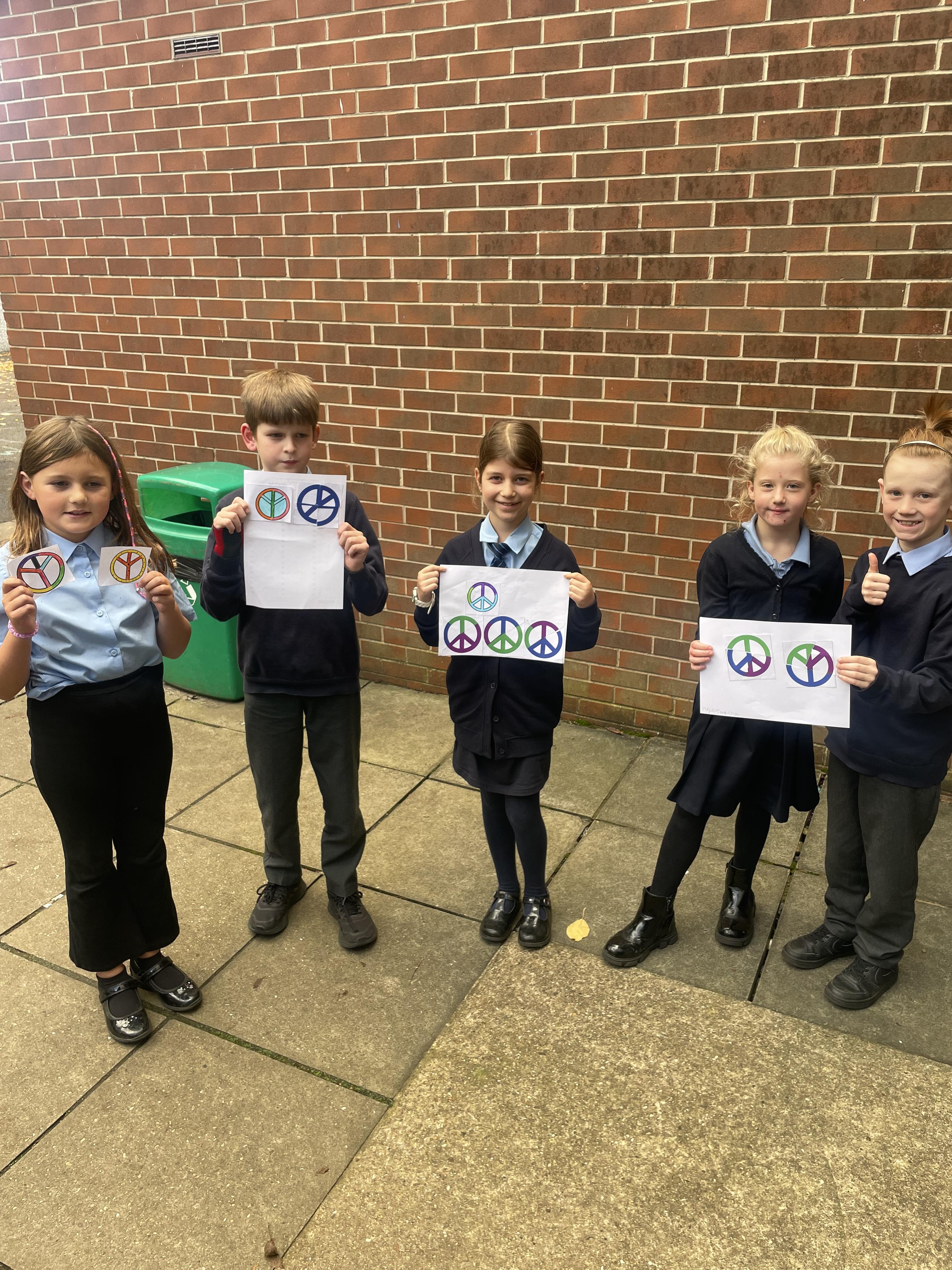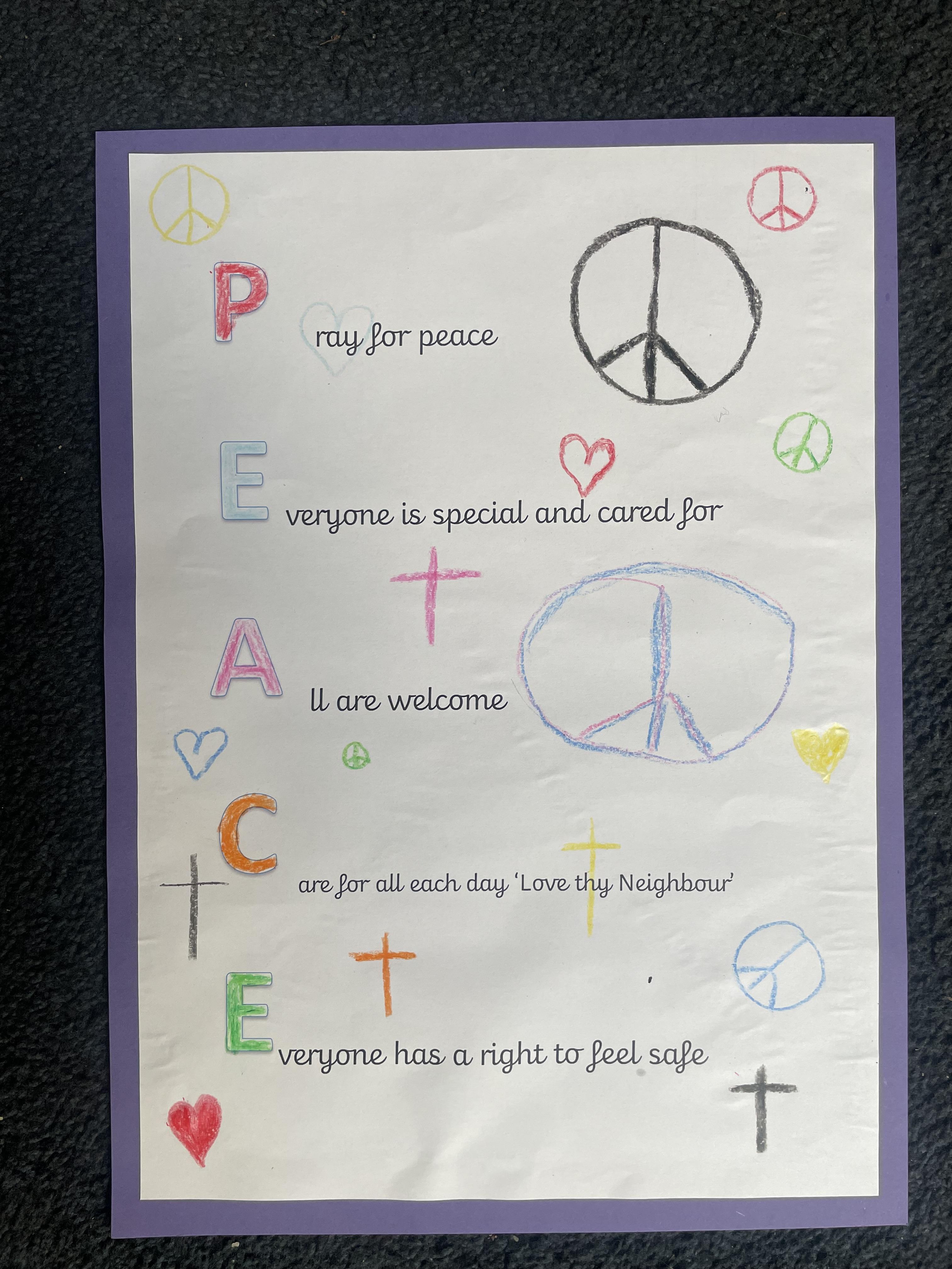 Following on from the recent conflict in Gaza, as a school we decided to spread the message of #PeaceNotWar. We spent the day reflecting on how we can spread peace and how fortunate we are. In EYFS they learned about how they could spread peace and explored the meaning behind the word peace. In Year 1 they created a heart paper chain with messages of peace on. In Year 2 they discussed what makes a peaceful school and what we can do to help with this. In Year 3 they looked at different peace symbols and created acrostic poems . In Year 4 they learned about peaceful protests and the story of Mama Zepreta. In Year 5 they reflected on current conflicts and how charities can help those in crisis. In Year 6 they learned about a boy who lives in Palestine and how conflict has impacted his life then make peace kites.