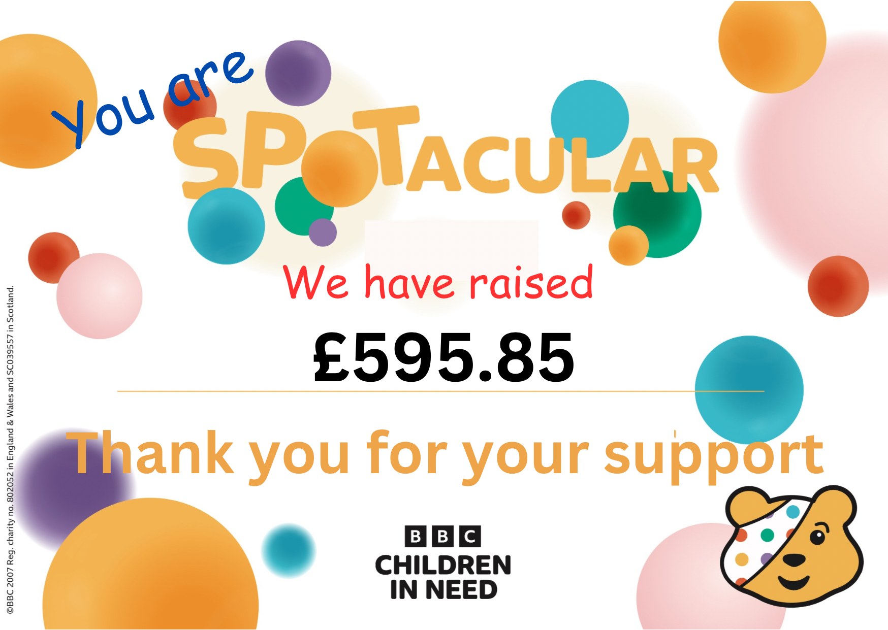 This year we organised the fundraising activities in order to support children in need. We decided to take part in Joe Wicks’ ‘Bearpee’ challenge. We challenged year group to complete 1000 burpees during the week leading up to Children in Need, finishing with a non-uniform day on Friday 17th November. The children were really successful and completed the challenge with ease and huge smiles whilst also raising money for others. Together we raised £689.05. Thank you to all our families who help support us raise this amount.