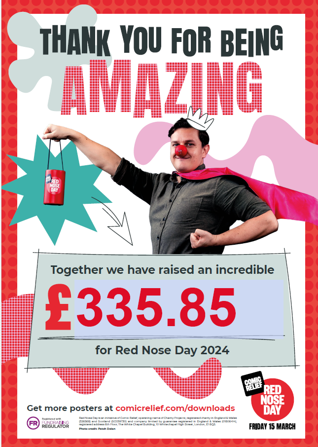 This year we organised the fundraising activities in order to support Comic Relief. We decided to organise a design a t-shirt compertition as well as a non-uniform day on Friday 15th March.  The children reflected on the importance of raising money for others less forchinate than oursleves. Together the school Community raised £335.85. Thank you to all our families who help support us raise this amount.