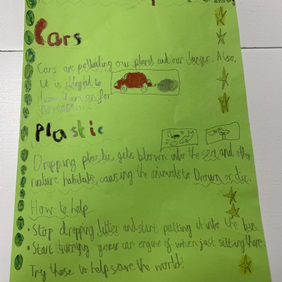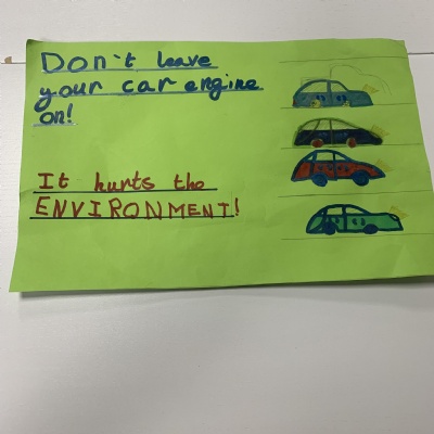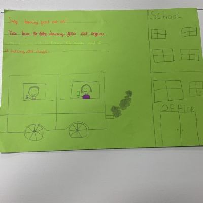 1. Adults leaving car engines running around school. We have looked at how engine idling is against the law, it pollutes the environment and it increases pollution around the school which can additional health problems for children. We are making posters to put around school and share with parents on Class Dojo.