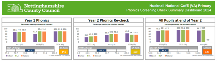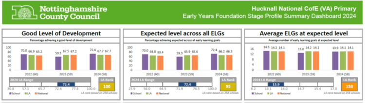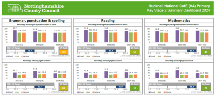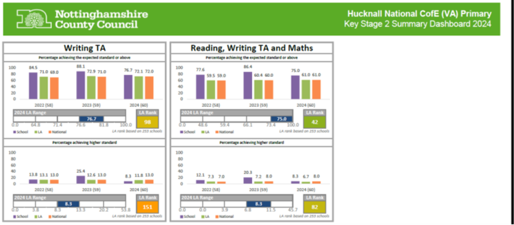 The Department for Education (DfE) Performance Tables let you compare results achieved at Hucknall National C of E Primary School with other schools locally and nationally.