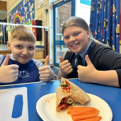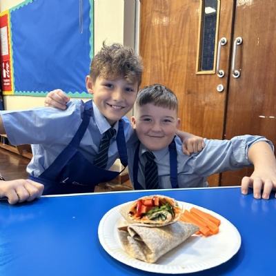 We were very lucky to have a visit from Leith's Academy. Trained chefs taught us how to make a variety of dishes that the children could make at home. Both Year 6 classes really enjoyed their morning and learned lots of new skills!